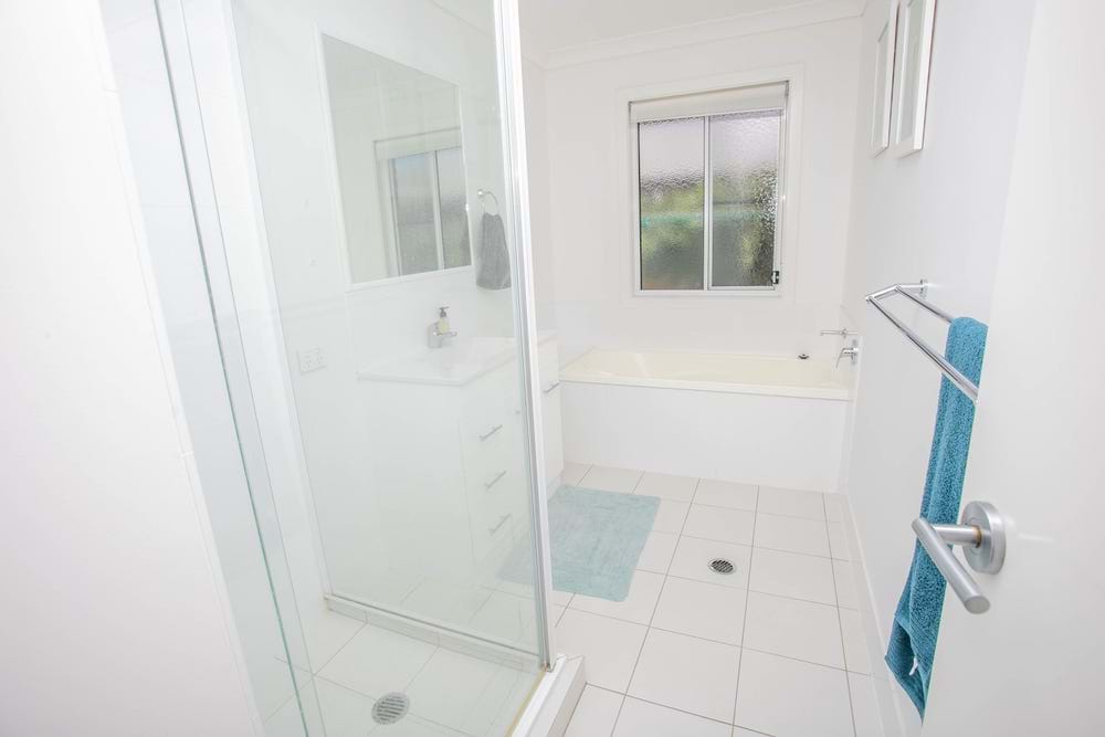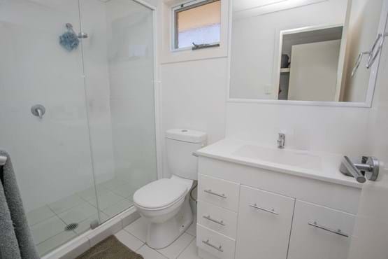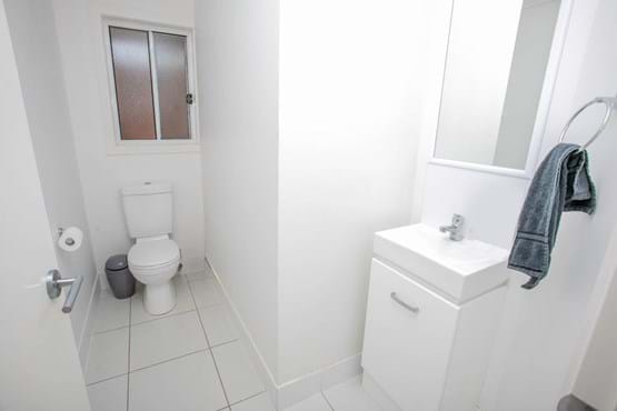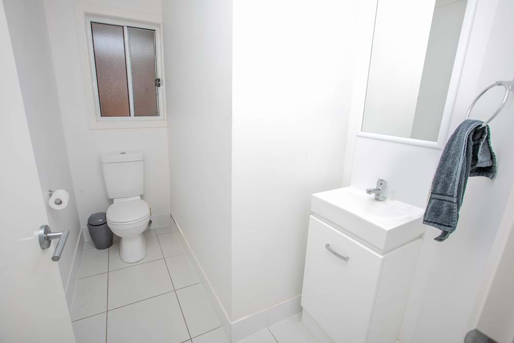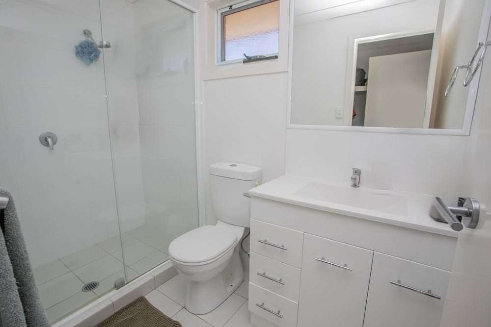The main bathroom has separate toilet which includes a vanity.