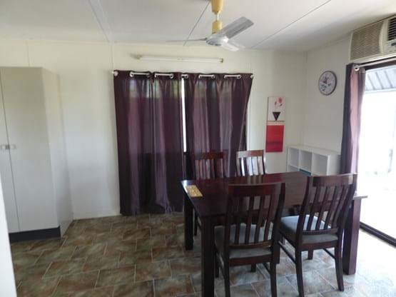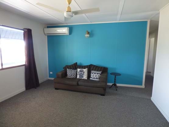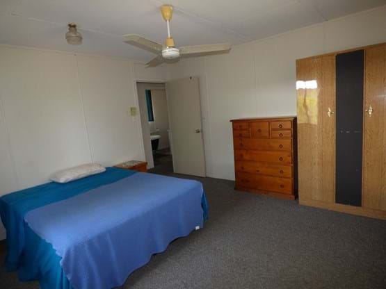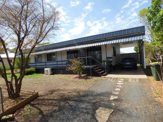 3 bedroom timber home on steel stumps. No built in wardrobes but all wardrobes are included in the furniture remaining with the property.