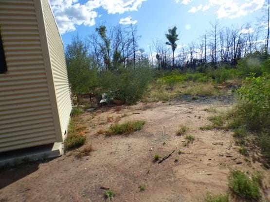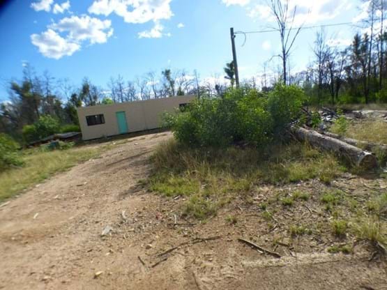 The original home burnt down. Existing building is a new one room building not complete internally. It is an open area. The steel frame is existing to finish the walls.