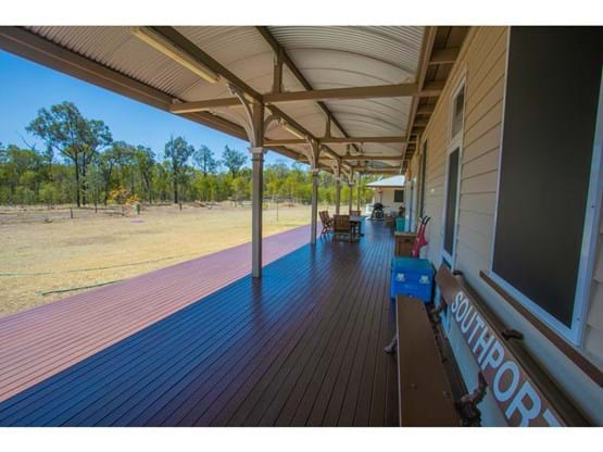 Large veranda to the back - special woodwork in upright structures & timber flooring to this large veranda to resemble a railway dock.